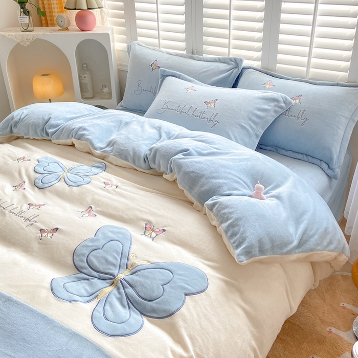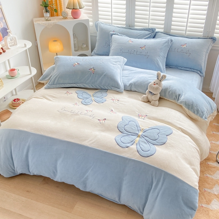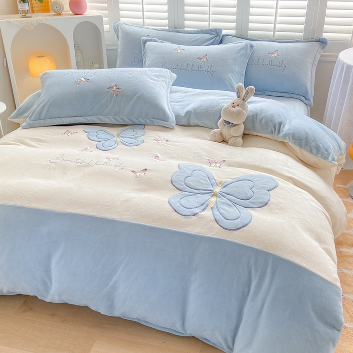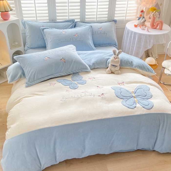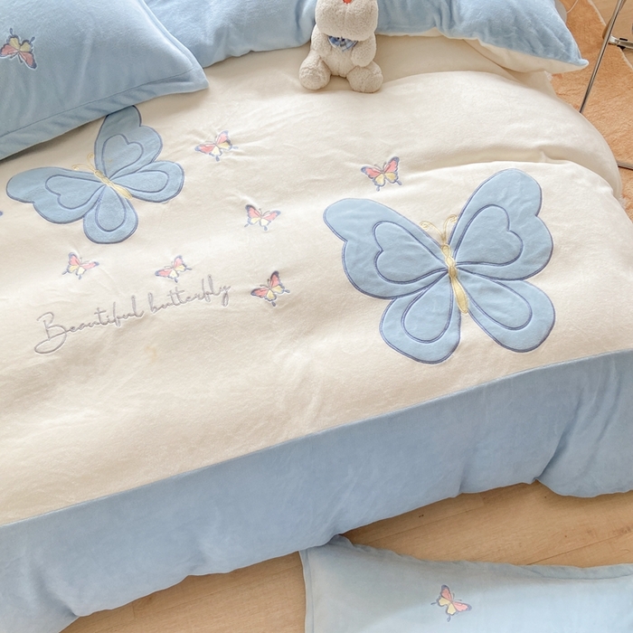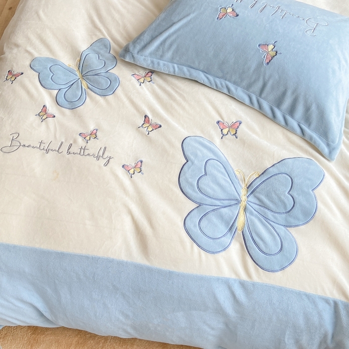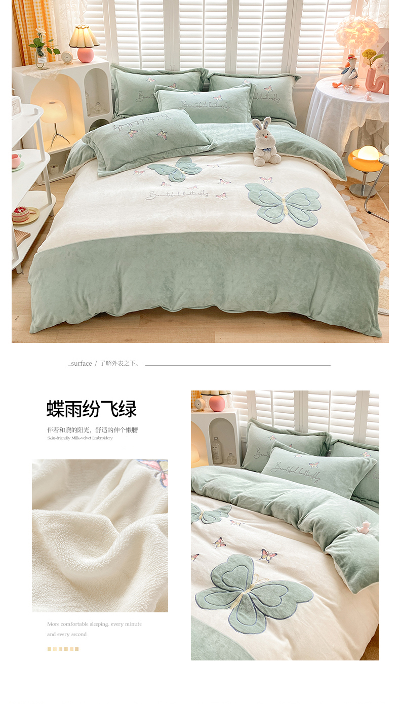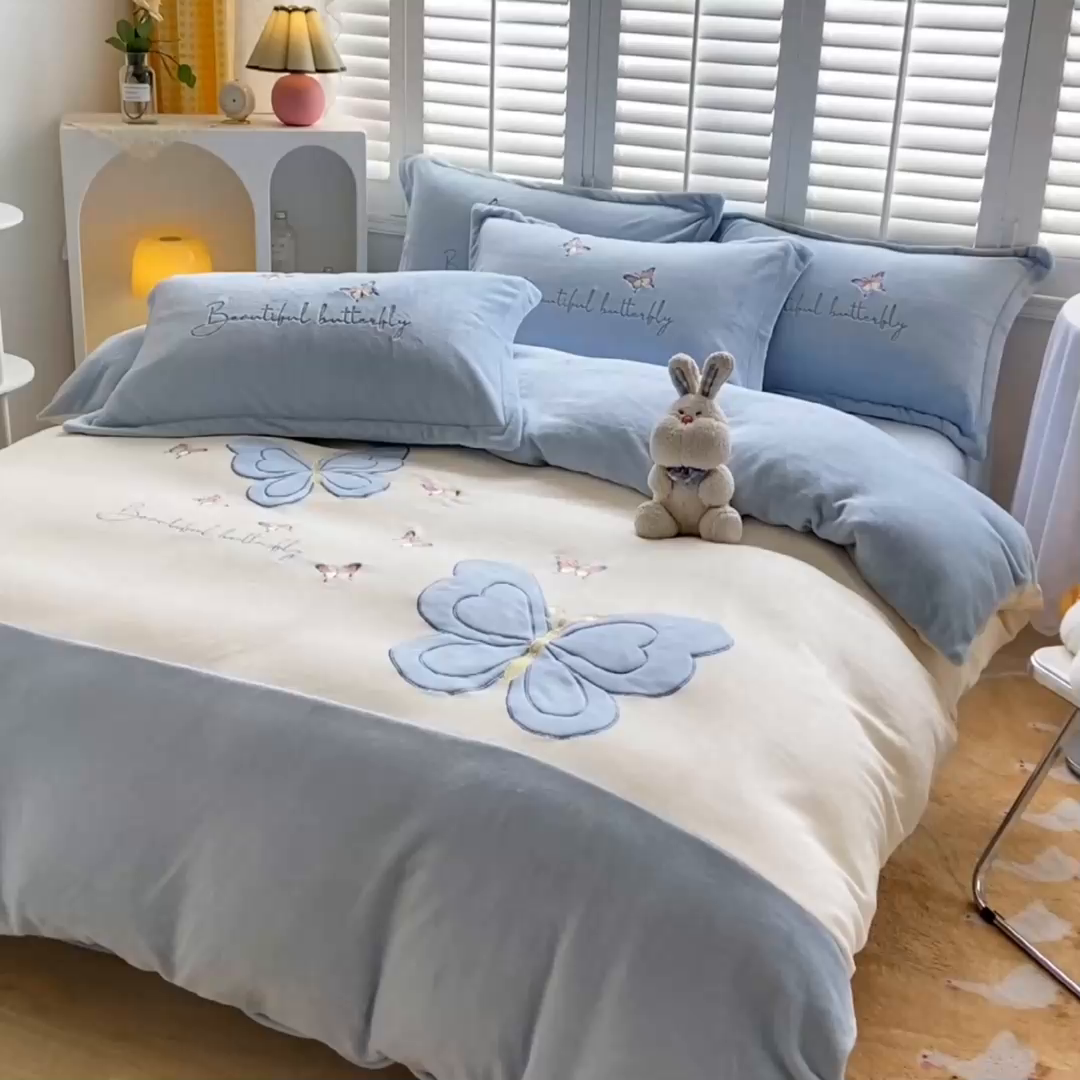 - - 2025新款水洗磨毛蝴蝶刺绣三拼四件套