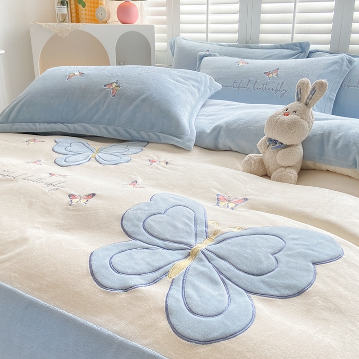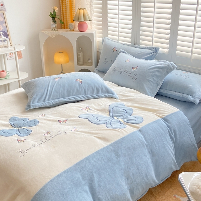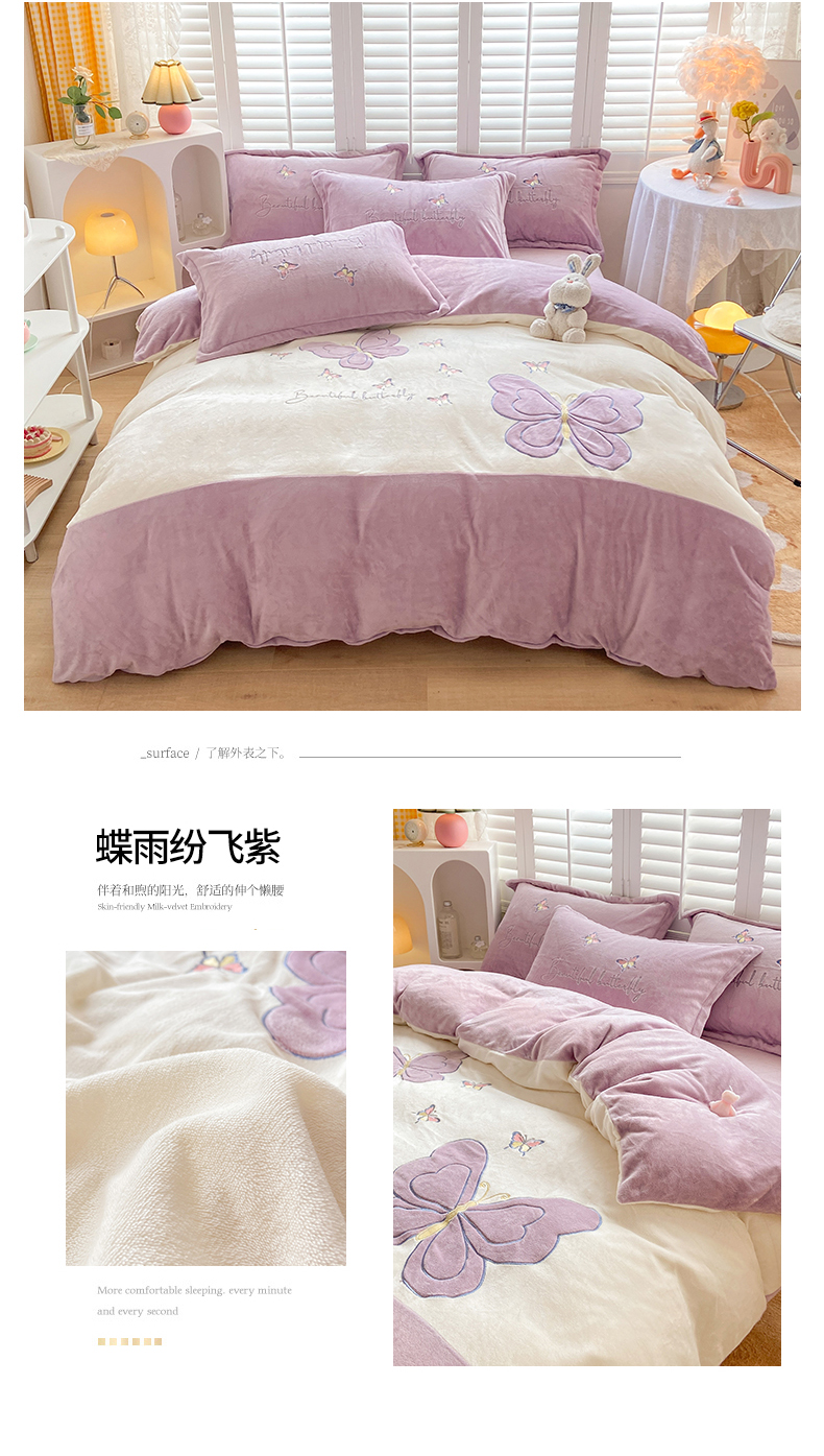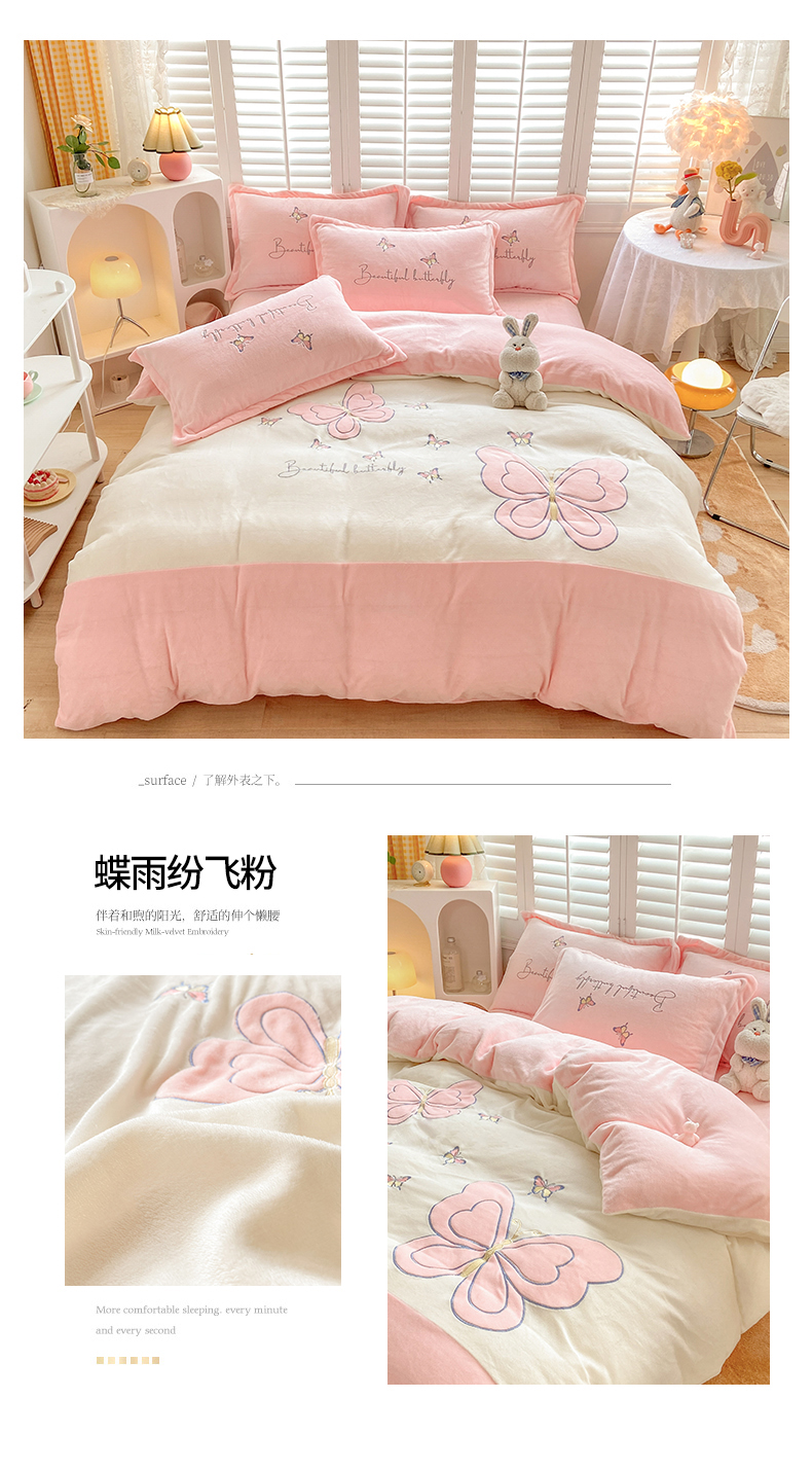 - - 2025新款200克牛奶绒四件套--蝴蝶结