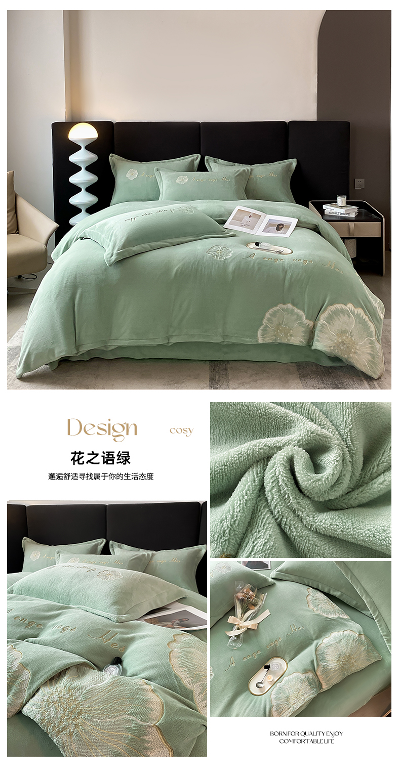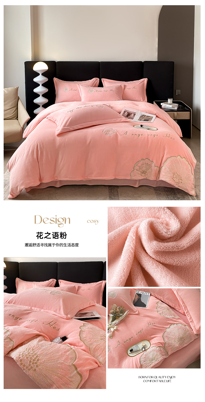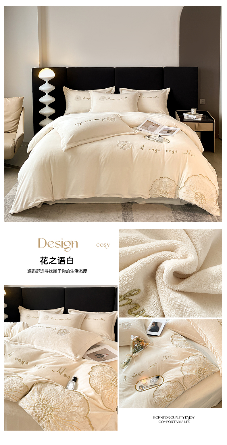 - - 2025秋冬新品200g牛奶绒刺绣四件套花之语系列