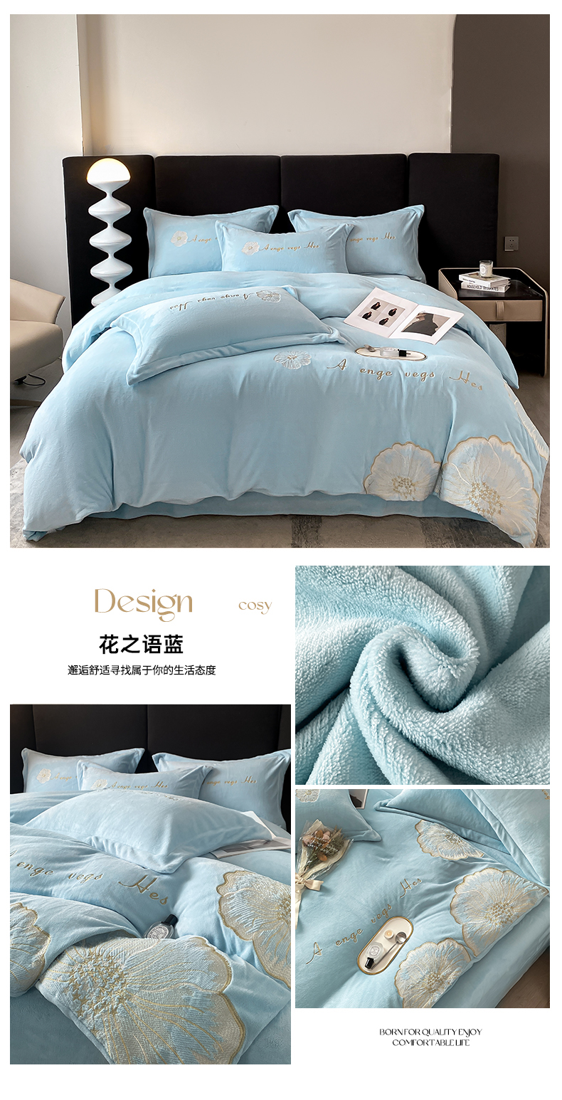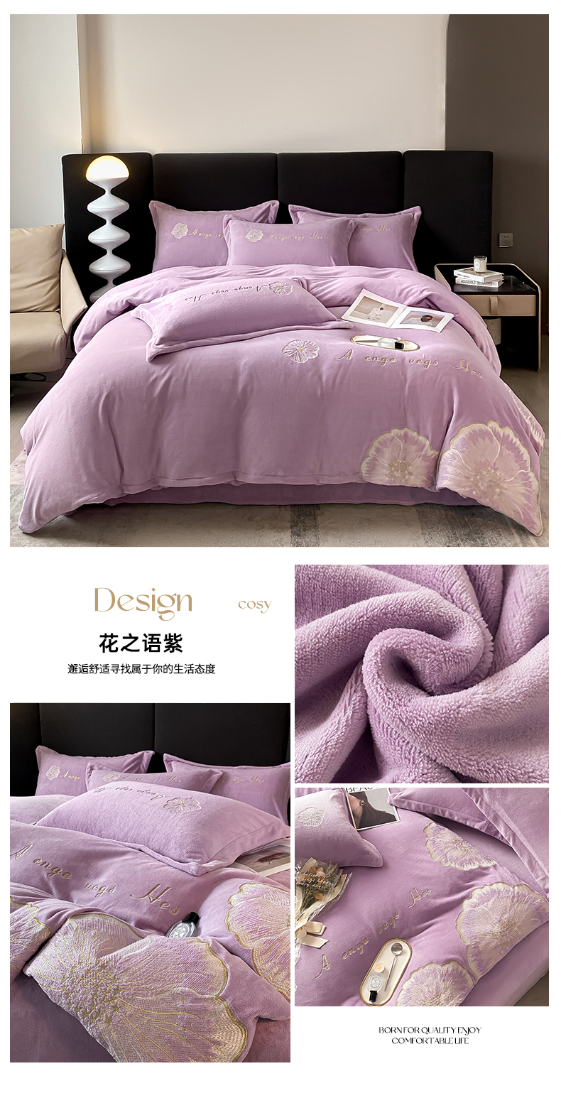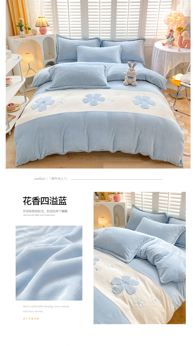 - - 2025秋冬新品200g牛奶绒刺绣四件套花之语系列