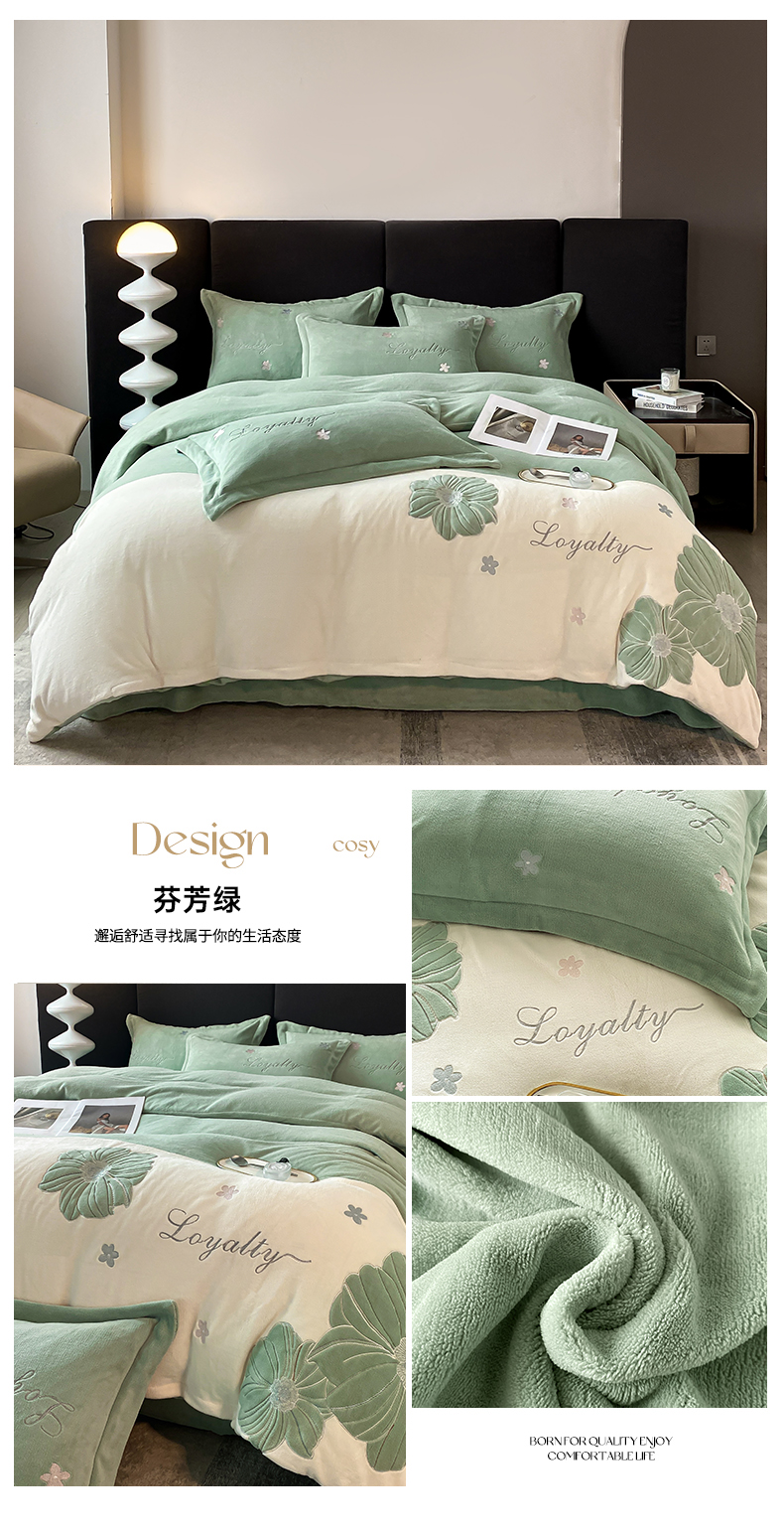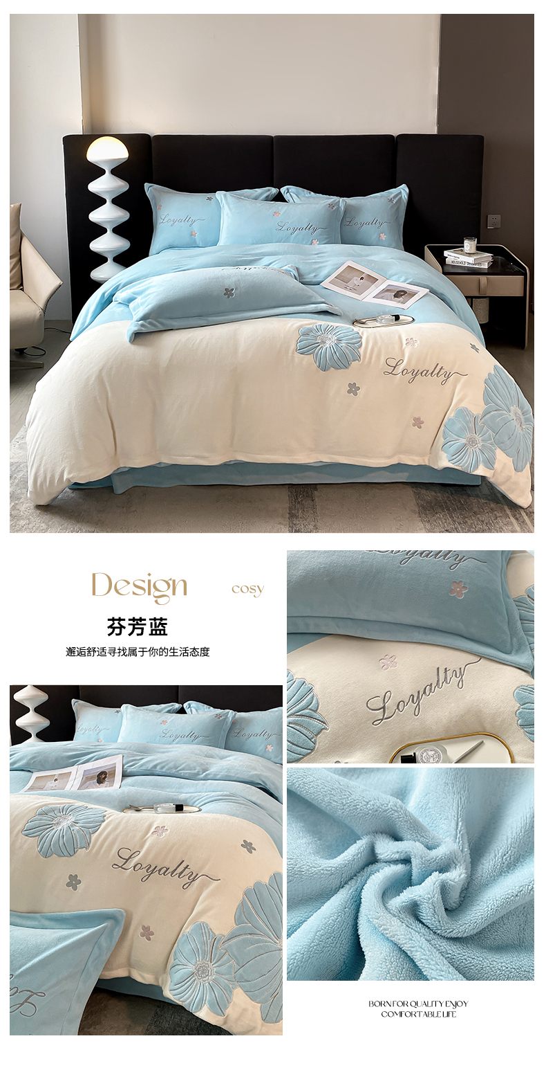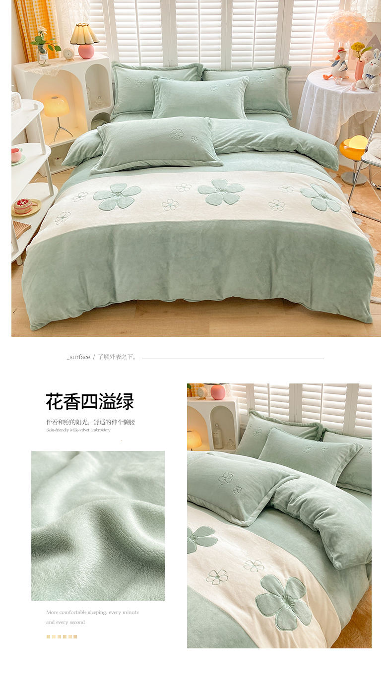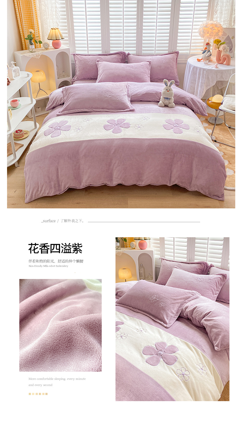- - 2025新款200克牛奶绒拼接刺绣四件套芬芳系列